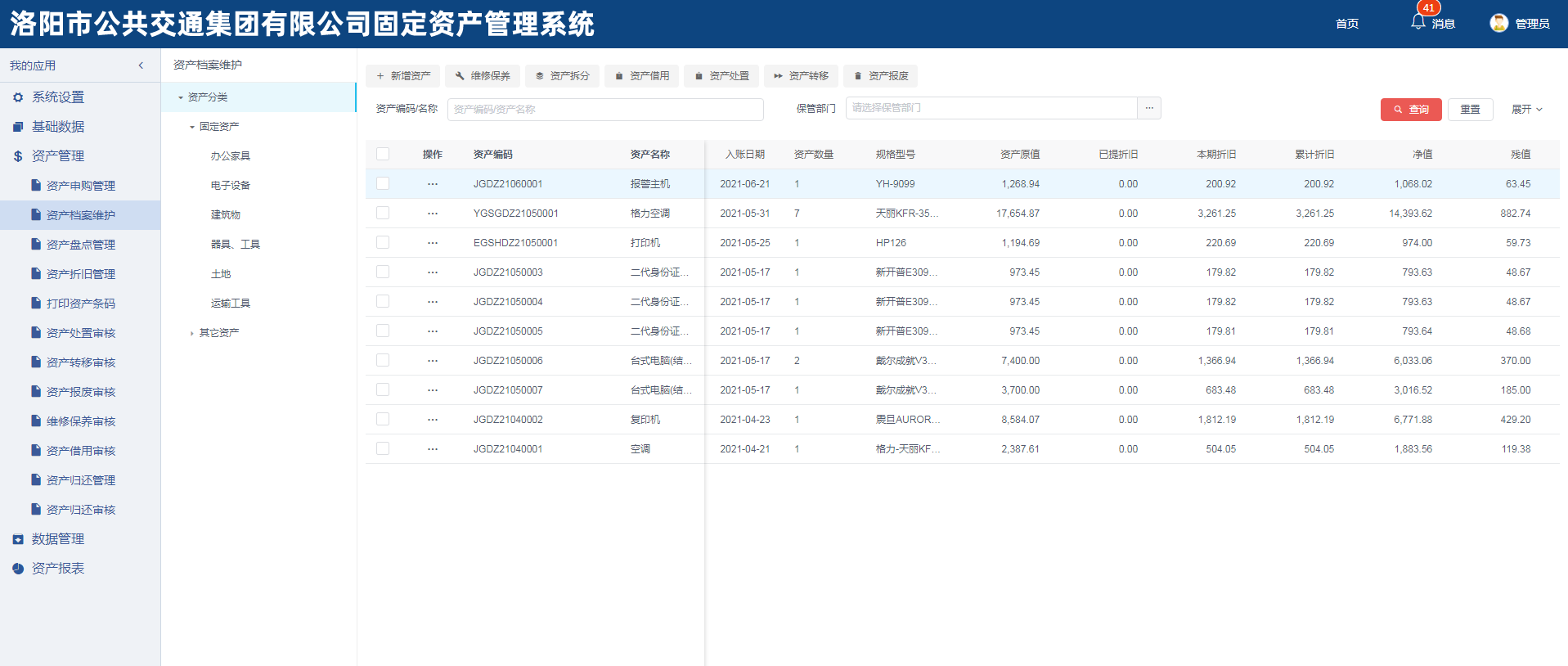 • 資產(chǎn)管理:資產(chǎn)申購管理(申請、審核)、資產(chǎn)檔案維護、借用/歸還、資產(chǎn)轉(zhuǎn)移、資產(chǎn)報廢、維修保養(yǎng)、續(xù)用、條碼打印、資產(chǎn)盤點管理、資產(chǎn)折舊、資產(chǎn)報廢管理(申請、審核)、資產(chǎn)處置(已報廢的資產(chǎn))